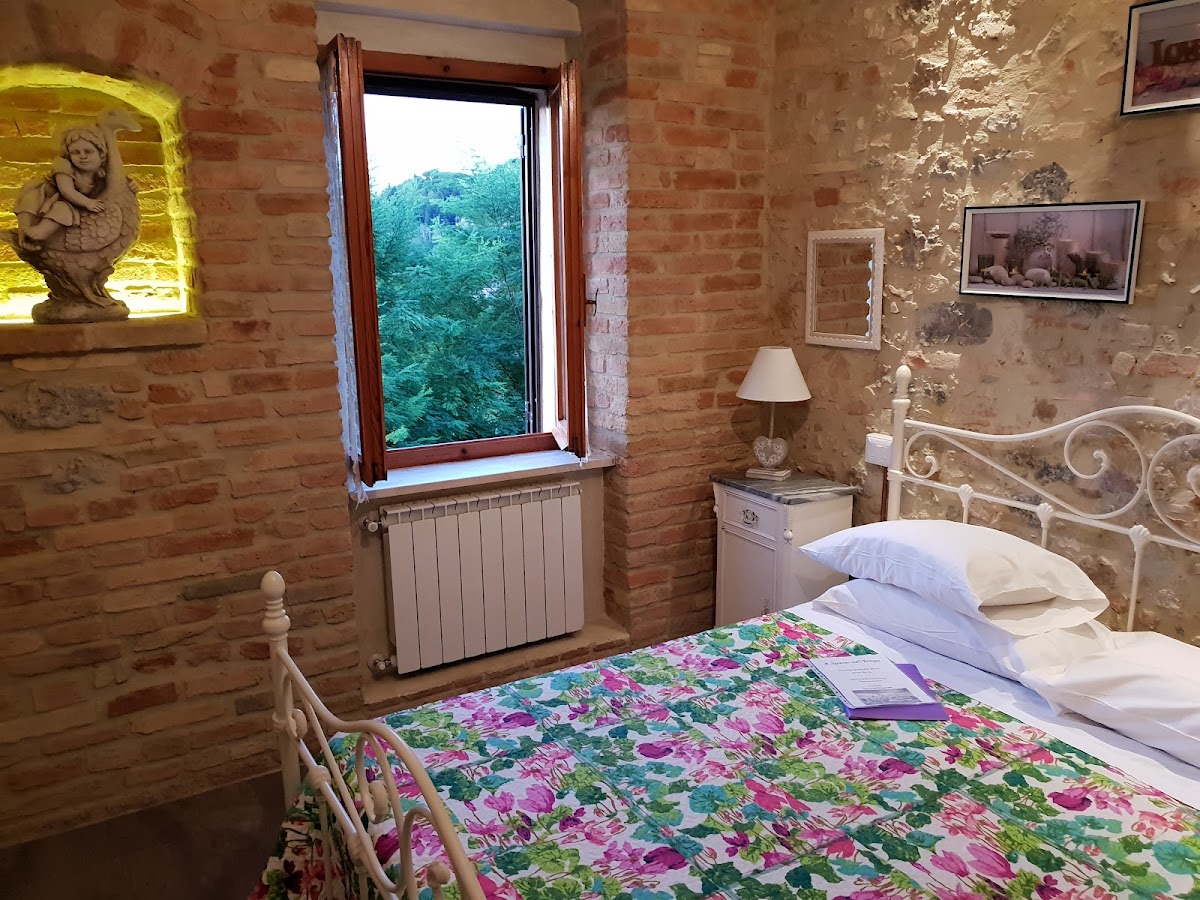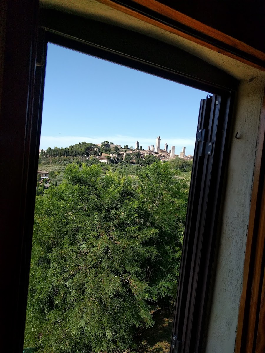 Ottima soluzione fuori delle mura della città, a dieci minuti a piedi dal centro e a pochi minuti di distanza dal vicino supermercato. Prezzi estremamente contenuti per la qualità del servizio offerto. Al primo piano di una piccola palazzina di due piani trattasi di due camere separate da piccolo soggiorno comune che funge da ingresso. Ogni stanza è dotata di servizi sanitari propri e di una spettacolare vista sulla città di San Gimignano, contraddistinta dalle sue caratteristiche torri. Estrema pulizia delle stanza e piacevole cortesia della proprietaria: Valentina, aspetti tutt'altro che secondari in grado di rendere il soggiorno davvero piacevole. Non viene offerto un servizio di colazione, ma nessun problema: si può usufruire (a pagamento, ovviamente) del bar-hotel di fronte l'alloggio, oppure ci si può recare al bar Giardino, subito fuori le mura della città, prima di immergersi nella visita di San Gimignano.